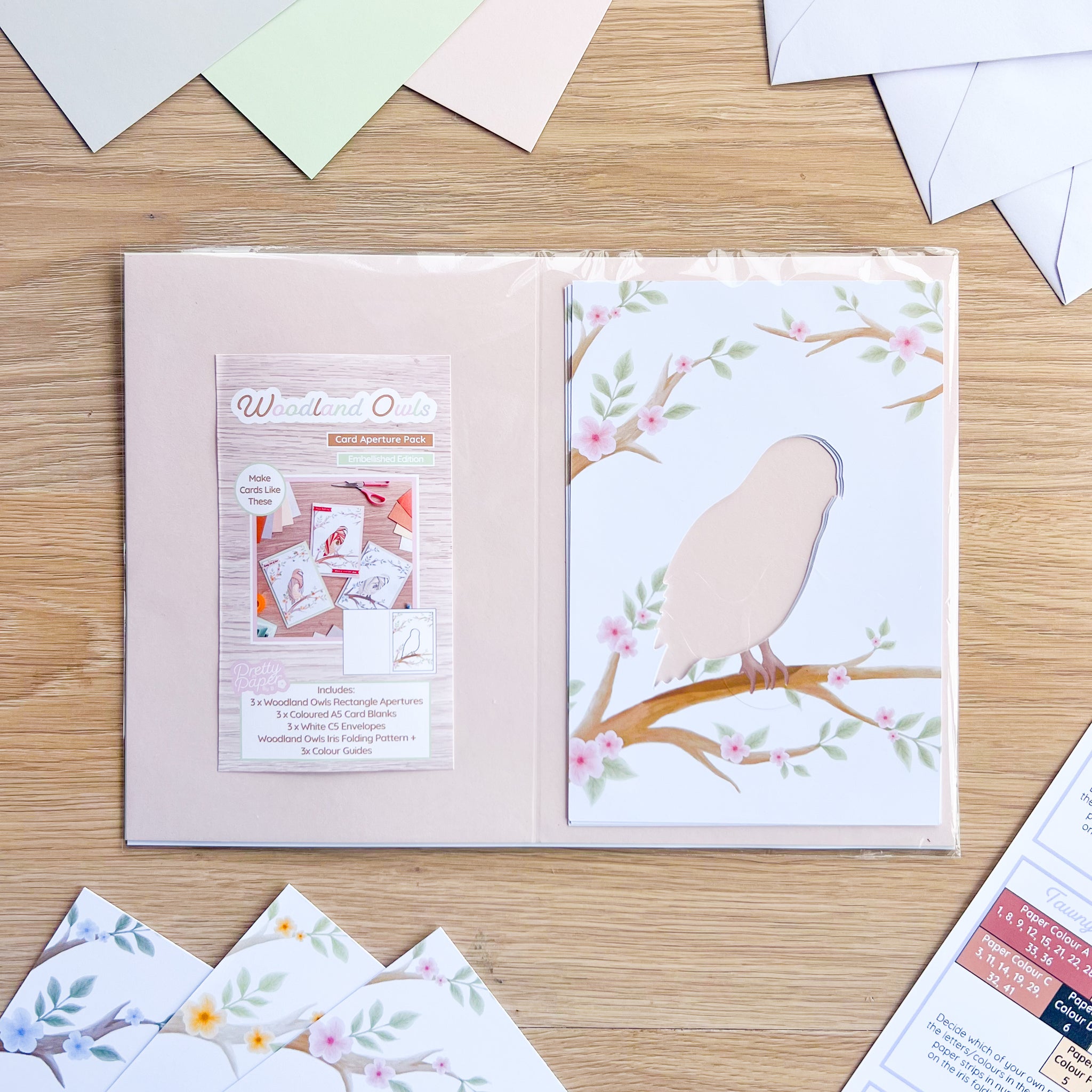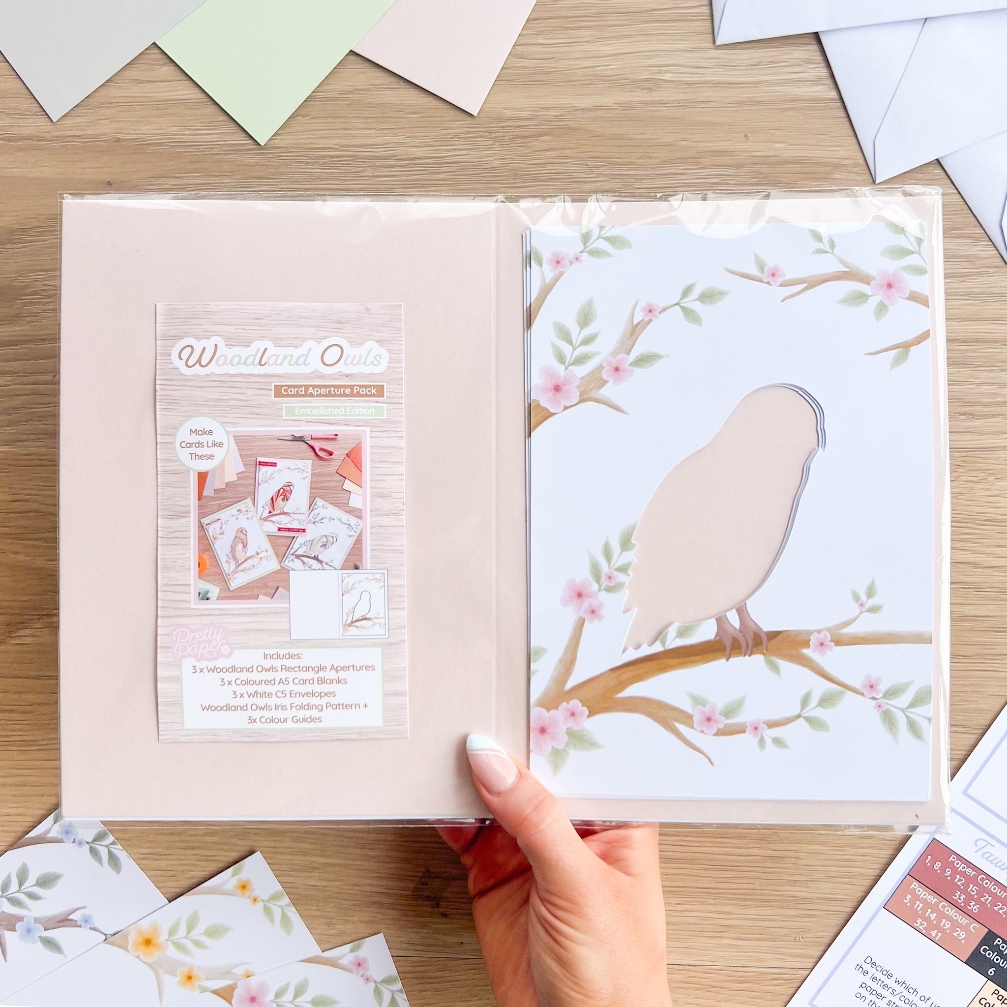 Your new Woodland Owls Card Aperture Pack includes the following: